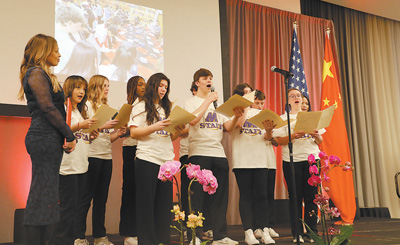 “你一定不會(huì)忘記,曾經(jīng)的小鎮(zhèn)經(jīng)歷。如今你重回故地,小鎮(zhèn)充滿了笑語(yǔ)。朋友期待相聚,人民渴望友誼。世界呼喚和平,地球憧憬美麗。那是情,那是緣,情緣留住永恒的記憶……”當(dāng)?shù)貢r(shí)間2月27日晚,中國(guó)駐芝加哥總領(lǐng)事館在芝加哥舉辦慶祝中美建交45周年招待會(huì),來(lái)自艾奧瓦州馬斯卡廷中學(xué)的學(xué)生們深情演唱歌曲《情緣留住永恒的記憶》。這首歌由艾奧瓦州友人薩拉·蘭蒂提議創(chuàng)作,表現(xiàn)習(xí)近平主席與馬斯卡廷老朋友的深厚情誼以及美中兩國(guó)人民的友誼。
