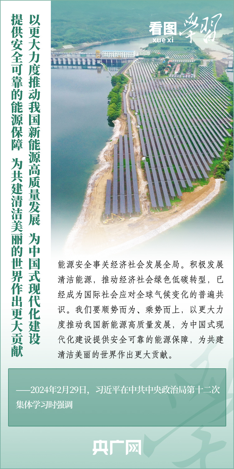 在主持最新一次集體學(xué)習時,總書記說,我們要順勢而為、乘勢而上,以更大力度推動我國新能源高質(zhì)量發(fā)展,為中國式現(xiàn)代化建設(shè)提供安全可靠的能源保障,為共建清潔美麗的世界作出更大貢獻。