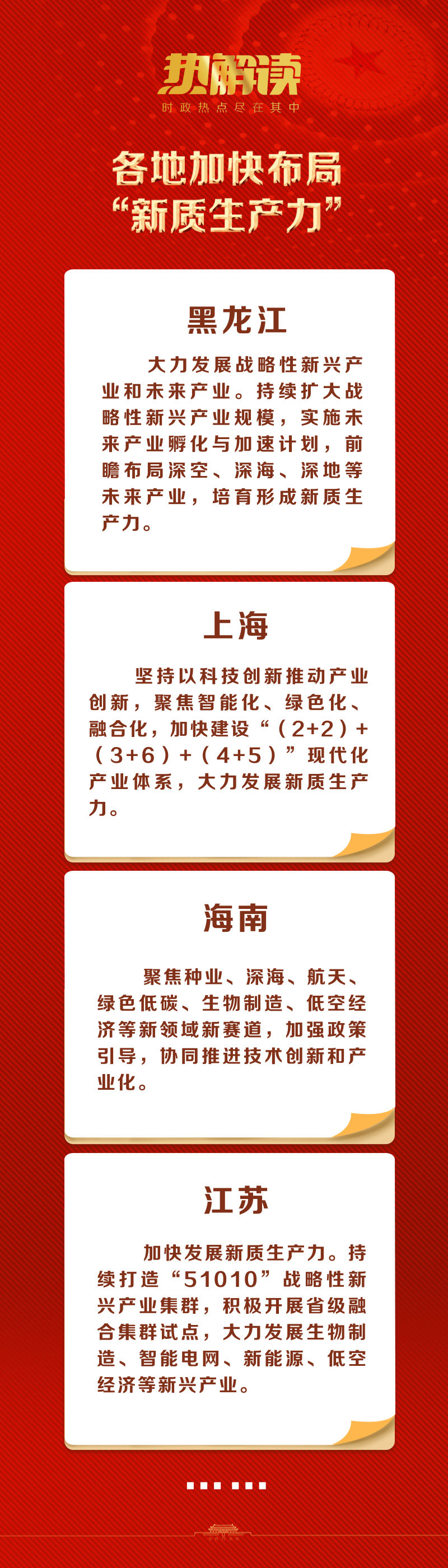 加快發(fā)展新質(zhì)生產(chǎn)力已成為2024年推進(jìn)經(jīng)濟(jì)社會(huì)高質(zhì)量發(fā)展的主旋律。各地?fù)屪C(jī)遇,紛紛布局。在各省區(qū)市2024年政府工作報(bào)告中,多地將加快培育新質(zhì)生產(chǎn)力列為重點(diǎn)工作任務(wù)。