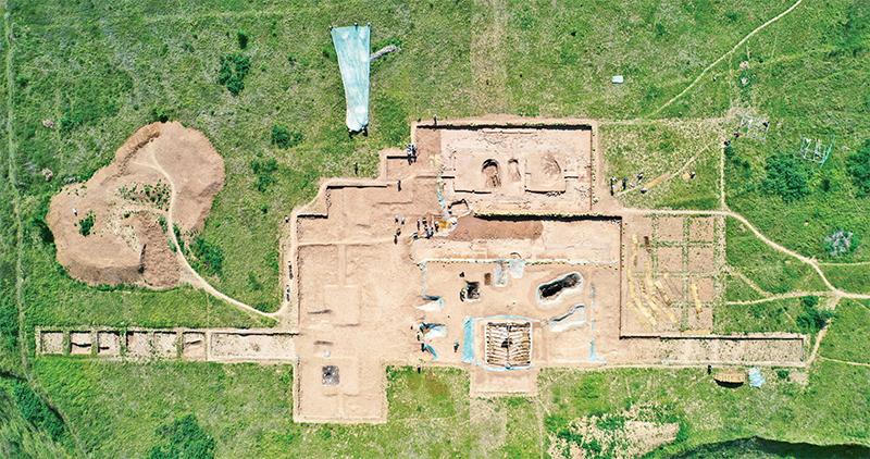甘肅省隴南市禮縣一帶是早期秦文化發(fā)祥地,被譽(yù)為“秦人故里”。四角坪遺址位于禮縣四格子山頂部,是目前已發(fā)現(xiàn)的罕見(jiàn)的規(guī)模宏大、格局規(guī)整的秦代大型建筑群,體現(xiàn)了中國(guó)古代統(tǒng)一國(guó)家形成初期的風(fēng)格和氣魄,被評(píng)為2023年度全國(guó)十大考古新發(fā)現(xiàn)之一。圖為2022年6月10日拍攝的考古發(fā)掘現(xiàn)場(chǎng)。 新華社記者 陳斌/攝