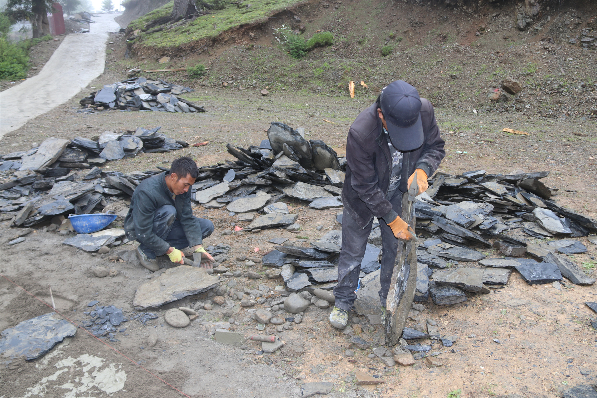 在環(huán)湖道路建設(shè)過程中,施工人員精心選用石板鋪路,充分保留了自然生態(tài)的和諧之美。