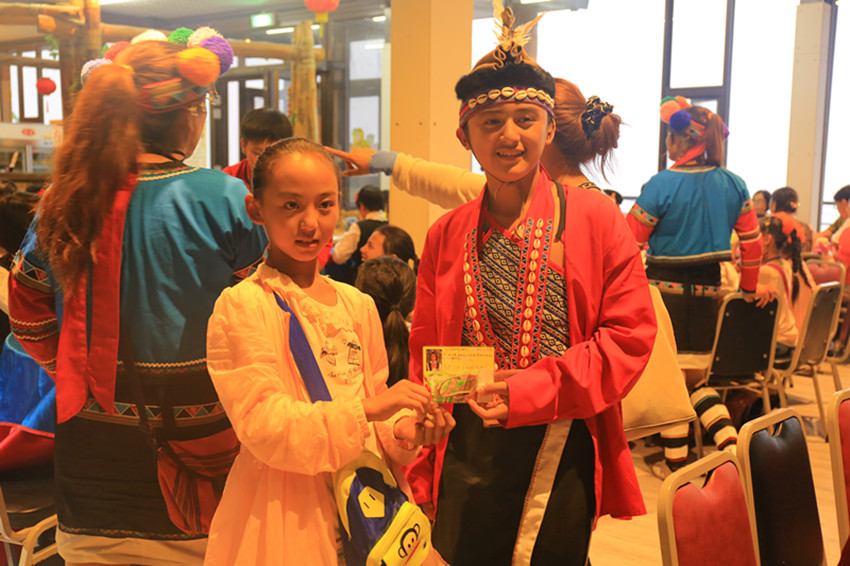 巴塘小朋友在臺上跳著歡快的《激情弦子》,臺下臺灣師生及學(xué)生家長立即打起節(jié)拍,把活動推向高潮。兩岸小朋友在午餐時間互相結(jié)對子,并通過贈送紀念品,互留電話號碼的方式將友情延續(xù)下去。在幾天的交流活動中,巴塘天籟童聲合唱團的孩子們也受到了臺灣當?shù)貙W(xué)生家長們的熱烈歡迎。在每場演出的現(xiàn)場,隨處可見拿著相機、攝像機記錄交流活動全過程的當?shù)貙W(xué)生家長。在巴塘孩子們的表演間隙,幾位熱心的當?shù)貙W(xué)生家長們立即給巴塘孩子送上礦泉水,詢問他們“累不累,熱不熱”。一位家長告訴筆者:“我是學(xué)生家長,當我看到巴塘小朋友在如此炎熱的天氣下,穿著華麗厚實的民族服飾演出,我的眼睛里全是淚花,真的特別感動??吹竭@些孩子們天真的笑容,聽著他們嘹亮的歌聲,我和其他家長一樣都被震撼了。我還專門拍了視頻打算回去給家人看,我希望他們在臺灣的這幾天能夠開心快樂,也希望他們以后還能來臺灣做更多交流。”