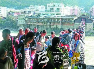 據(jù)縣文物局局長(zhǎng)郭成燕介紹,今年“十一”黃金周期間,游覽瀘定橋的游客較往年更理性,沒(méi)有出現(xiàn)井噴現(xiàn)象,每天游客量比較平穩(wěn)。游客主要以成都和重慶方向?yàn)橹鳎?5%以上的游客選擇自駕游出行。據(jù)悉,在10月2日這天,瀘定橋全天接待游客近萬(wàn)人。為了確保游客安全,縣旅游部門在橋頭設(shè)立了安全警示牌,在游客高峰期,工作人員每5至10分鐘分批次放行,每次參觀放行不超過(guò)100人,并安排工作人員在瀘定橋中央疏導(dǎo)游客,確保游人安全。同時(shí),在瀘定橋頭滾動(dòng)播出參觀須知和瀘定橋介紹,引導(dǎo)游人參觀。黃金周期間,該縣旅游部門堅(jiān)持24小時(shí)值班,隨時(shí)對(duì)瀘定橋及周邊進(jìn)行安全巡查,確保安全。截至10月4日,參觀瀘定橋的游客約3.3萬(wàn)人,門票收入達(dá)25萬(wàn)多元。