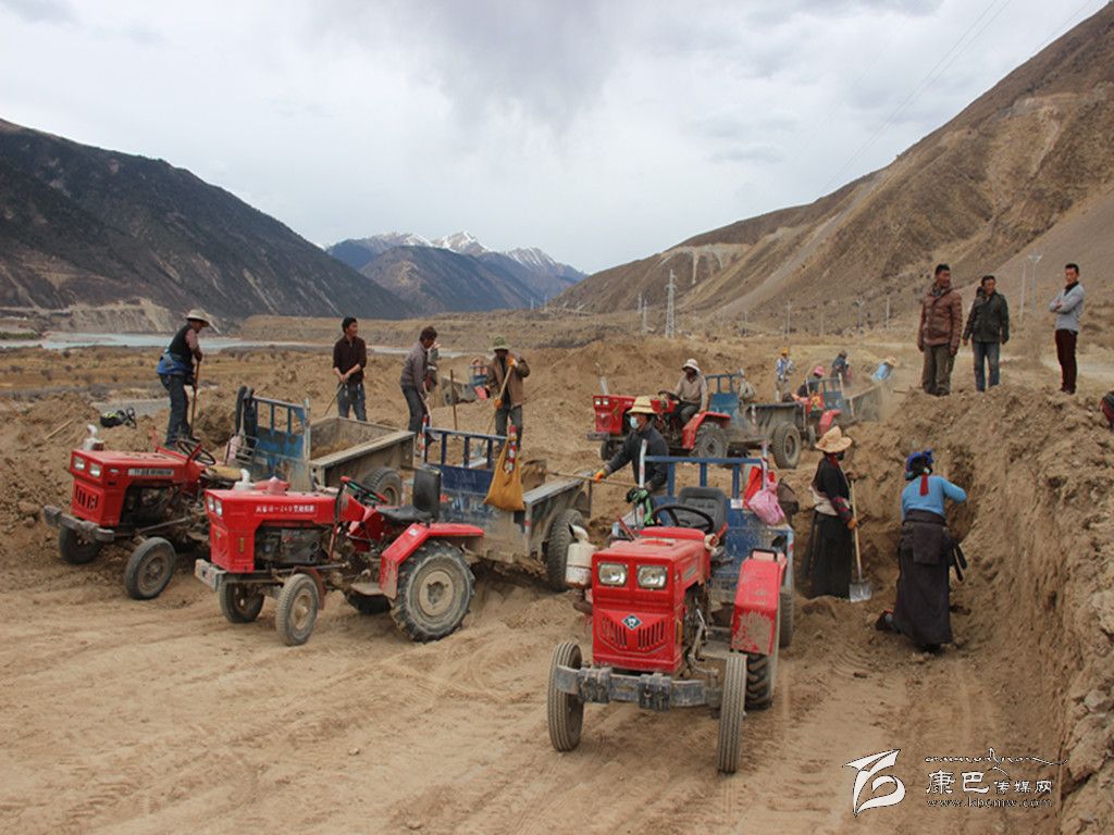 在當(dāng)巴村施工路段,近百余名群眾在一處沙石采集地干得熱火朝天,負(fù)責(zé)這一路段的鄉(xiāng)干部告訴筆者,在這次全區(qū)義務(wù)修路過程中,一共投入了300多輛拖拉機(jī)和五臺(tái)裝載機(jī),拖拉機(jī)大部分是群眾自愿開來幫忙的,區(qū)上為施工最困難的幾個(gè)路段想法借了五臺(tái)裝載機(jī),雖然工程機(jī)械相當(dāng)缺乏,但好在人多,而且干活團(tuán)結(jié),工作效率一下就提上去了。