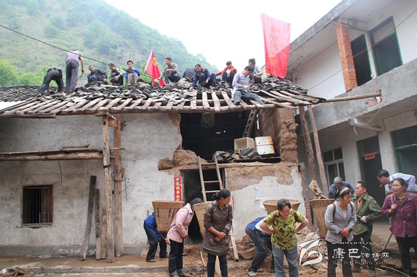 黨員突擊隊幫助災區(qū)群眾恢復受損房屋。