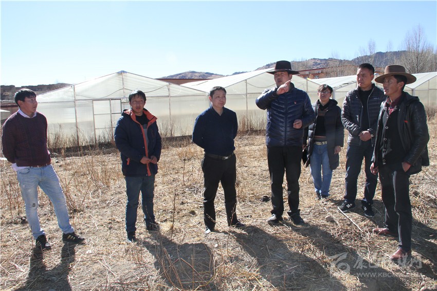 理塘縣委副書記、縣政府縣長(zhǎng)鄭顯峰(左四)調(diào)研產(chǎn)業(yè)扶貧。