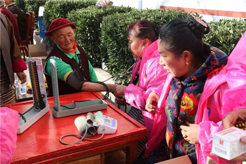 “我們送來(lái)的衣服和鞋子都是為老人們量身定制的,愿老人們健康快樂(lè)。”志愿者志瑪說(shuō)。圖為志愿服務(wù)現(xiàn)場(chǎng)。