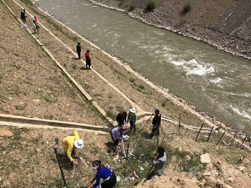 爐霍縣洛秋鄉(xiāng)村民對(duì)轄區(qū)河道進(jìn)行治理。