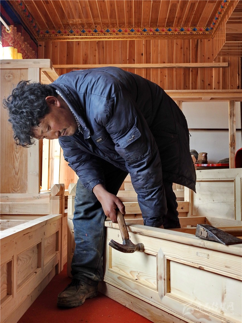 一座頗有些文藝氣質(zhì)的木頭房子,矗立在國(guó)道317線旁,這是仁果上村的精準(zhǔn)扶貧項(xiàng)目,也是甘孜縣唯一的手工木工經(jīng)營(yíng)合作社,村長(zhǎng)土登生龍給它起名“木工加工坊”。這幾天,土登生龍每天都在加工坊里忙碌,年底了,木工加工合作社的生意空前的好。