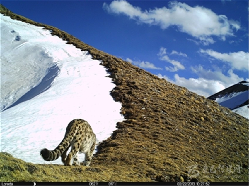 2016年4月16日19時27分,兩只小雪豹在新龍的一處山梁上走過。它們的母親在不久前經(jīng)過,也被相機拍下。