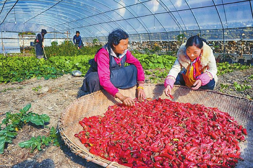 在對口幫扶下,然央村種植的大棚辣椒豐收了。