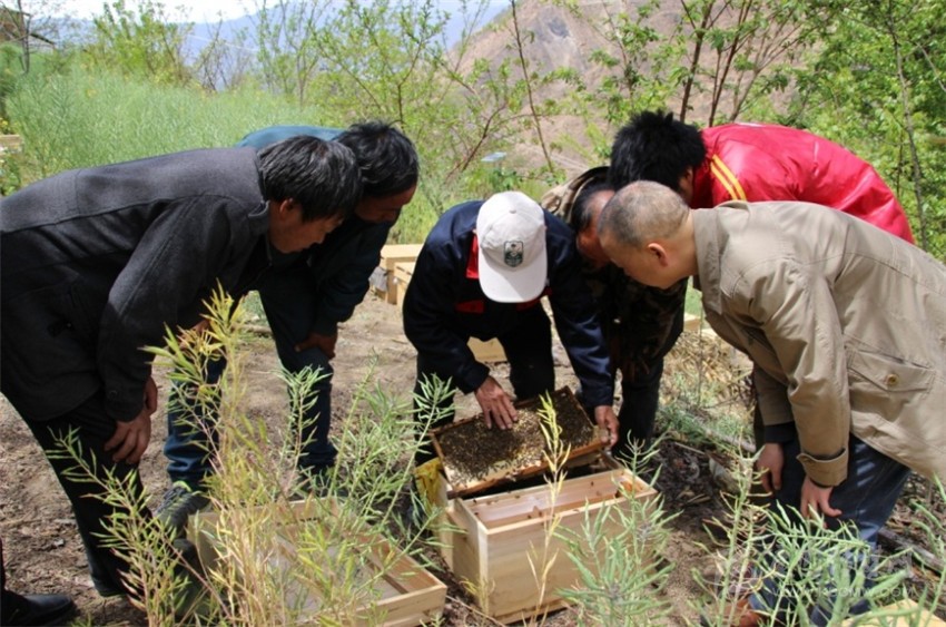 技術(shù)人員指導村民養(yǎng)殖貢嘎中蜂。