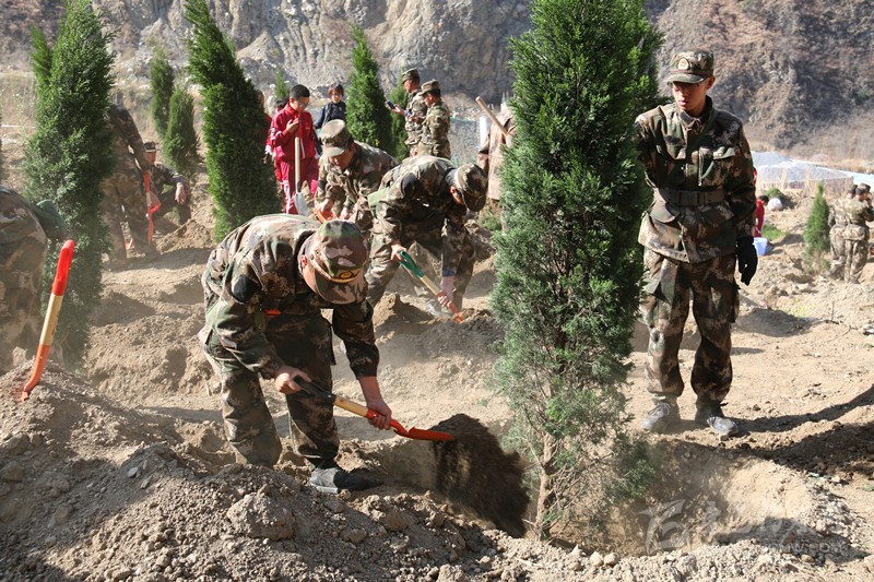 在該縣瀘橋鎮(zhèn)五里溝村雅康高速公路瀘定連接線公路兩旁,參加植樹的州級領導及干部職工和駐瀘官兵,有的杠樹苗、有的提工具、有的拿水桶,好一派繁忙的景象……植樹活動現(xiàn)場,有人在挖坑、有人在扶苗、有人在填土、有人在澆水,通過近兩小時的種植,剛通車不久的公路兩旁呈現(xiàn)出生機勃勃的景象。據(jù)了解,當天的植樹活動共栽下塔柏、海棠、桃樹、三角梅共計2000多株,其中,塔柏約1500株左右。