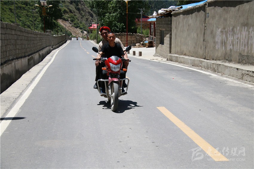 “以前村里沒公路,通鄉(xiāng)的也是一條‘土路’(機耕道),到縣城要兩個小時。因為路況不好,騎摩托車稍不注意就滑到路邊溝里了?!惫状宕迕襁冉q澤仁回想交通不暢帶來的不便,仍是心有余悸。