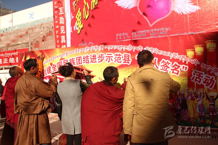 其實(shí),在白玉,像澤稱降措這樣感人肺腑的故事絕非個(gè)案。采訪中,筆者細(xì)細(xì)梳理五年來白玉的創(chuàng)建舉措與成績,完全可以用“務(wù)實(shí)”“扎實(shí)”這四個(gè)字來形容。自2014年創(chuàng)建活動(dòng)啟動(dòng)以來,縣委、縣政府嚴(yán)格按照“三年創(chuàng)建、四年提升”要求,緊扣“八進(jìn)活動(dòng)、共建對子”兩個(gè)關(guān)鍵,聚焦“民族團(tuán)結(jié)促發(fā)展、民族團(tuán)結(jié)促穩(wěn)定、民族團(tuán)結(jié)促民生”三大目標(biāo),采取“精準(zhǔn)安排、精準(zhǔn)施策、精心打造、精細(xì)管理”四項(xiàng)舉措,并通過層層簽訂目標(biāo)責(zé)任書和層層落實(shí)創(chuàng)建標(biāo)準(zhǔn)、測評指標(biāo),進(jìn)而形成了“黨委統(tǒng)一領(lǐng)導(dǎo)、黨政齊抓共管、部門各司其職、社會廣泛參與”的創(chuàng)建工作格局;采取“年度定方案、季度有督查、月月抓推進(jìn)、層層重落實(shí)”的方式,通過召開專題會、動(dòng)員會、現(xiàn)場會、督導(dǎo)會、匯報(bào)會等形式,抓問題、添措施、促整改、補(bǔ)短板、求提升,一系列動(dòng)真碰硬的推進(jìn),使得創(chuàng)建工作由“虛”變“實(shí)”;按照“精準(zhǔn)宣講、掛圖作戰(zhàn)、對單宣講、對村消號、定學(xué)式”的宣講思路,采取“縣到鄉(xiāng)、鄉(xiāng)進(jìn)村、村入戶、寺廟與僧尼”四個(gè)面對面等方式,并結(jié)合常態(tài)化開展的“四下鄉(xiāng)”活動(dòng),廣泛學(xué)習(xí)宣傳黨的民族理論、宗教政策、法律法規(guī)以及各項(xiàng)惠農(nóng)惠民政策。五年來,全縣累計(jì)出動(dòng)宣講服務(wù)人員1180人次,開展宣講宣教、“四下鄉(xiāng)”活動(dòng)以及民族團(tuán)結(jié)“八進(jìn)”活動(dòng)多達(dá)988場次,覆蓋基層干部、農(nóng)牧民群眾和及寺廟近8萬人次,發(fā)放各類宣傳資料2.3萬余份、圖書光盤4500余本(張),贈送各種書籍4130余冊,放映電影152場次;在主要街道、繁華路段、出租車頂屏、燈箱燈桿以及干線公路沿線堡坎,設(shè)置LED屏、宣傳牌、滾動(dòng)標(biāo)語和墻體標(biāo)語,推送各類創(chuàng)建信息上萬余條,在各機(jī)關(guān)、單位、醫(yī)院、學(xué)校、寺廟、鄉(xiāng)鎮(zhèn)、村組(社區(qū))設(shè)置民族團(tuán)結(jié)標(biāo)語、宣傳櫥窗、展板和文化墻,推出各類宣傳欄2145個(gè)、宣傳展板 435個(gè);在縣級宣傳平臺開設(shè)專欄,完成各類主題宣傳300余場次;舉辦創(chuàng)建“萬人簽名”、鍋莊節(jié)、演講比賽、籃球友誼賽、知識競賽、文藝演出等各類民族團(tuán)結(jié)主題活動(dòng)近20場,實(shí)現(xiàn)了創(chuàng)建宣講宣傳宣教全方位、多層面、立體式和廣覆蓋;切實(shí)將民族團(tuán)結(jié)工作與脫貧攻堅(jiān)、基層黨建、群眾工作、鄉(xiāng)村治理、依法治縣等有機(jī)結(jié)合,大力開展干群結(jié)對認(rèn)親、干部聯(lián)寺聯(lián)僧、支部共建共創(chuàng)以及警民共建等活動(dòng);切實(shí)在廣大農(nóng)牧民群眾、幫扶援建隊(duì)伍、宗教寺院、學(xué)校師生、企業(yè)以及部隊(duì)中發(fā)現(xiàn)典型、宣傳典型,進(jìn)而在全縣上下形成了“學(xué)先進(jìn)、趕先進(jìn)、當(dāng)標(biāo)兵”的濃厚氛圍;采取政策傾斜、整合項(xiàng)目、配套資金等措施,狠抓示范點(diǎn)規(guī)范化建設(shè)。目前,全縣所有鄉(xiāng)(鎮(zhèn))、縣級黨政機(jī)關(guān)、武警部隊(duì),45%以上的村(社區(qū))、企事業(yè)單位和寺廟已成為民族團(tuán)結(jié)進(jìn)步示范地區(qū)或示范單位;……精準(zhǔn)發(fā)力、持續(xù)給力的創(chuàng)建活動(dòng),有效形成了創(chuàng)建活動(dòng)“人人參與、人人推動(dòng)、人人負(fù)責(zé)、人人共享”的喜人局面。