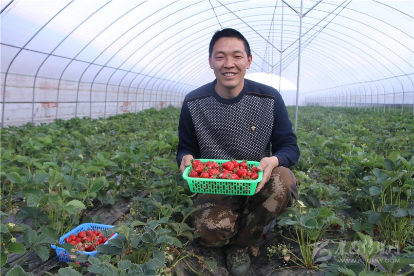 草莓喜獲豐收,肖云樂開了懷。