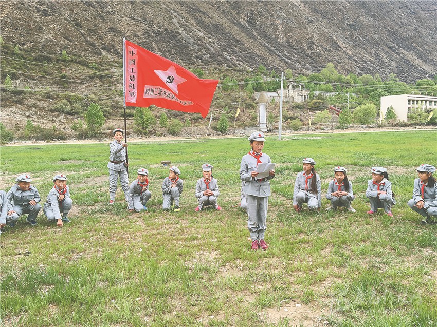 在巴塘,紅色教育是各個(gè)學(xué)校的“必修課”。巴塘金弦子小學(xué)少年軍校是巴塘縣第一所少年軍校。鮮明特色、多彩活動(dòng)、創(chuàng)新教育,渲染出絢麗“紅色”。學(xué)校教務(wù)副主任陳雪秋告訴筆者,革命傳統(tǒng)不能忘,紅色精神代代傳,少年軍校是接力站,把革命火炬接續(xù)傳遞;是大熔爐,讓小小少年錘煉意志、升華靈魂,讓紅色的旗幟高高飄揚(yáng)。