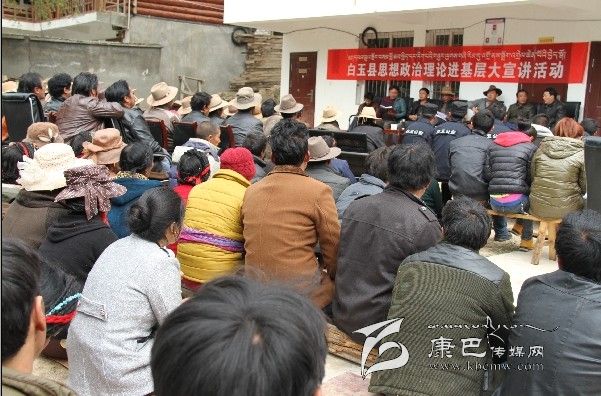 在教育實踐活動中,白玉縣構(gòu)建大宣講格局,成立了一團三組三聯(lián)系四特色的創(chuàng)新工作方式,以縣委書記為團長,組建三支宣講組,即思想政治理論組、寺廟文化政策組、法律法規(guī)組;縣級領(lǐng)導(dǎo)聯(lián)系1個鄉(xiāng)鎮(zhèn)、一個鄉(xiāng)鎮(zhèn)聯(lián)系一個村、一個村聯(lián)系一戶貧困家庭,以教育、衛(wèi)生、農(nóng)業(yè)、文化為四個特色窗口。啟動了“走基層、大宣講”活動。
