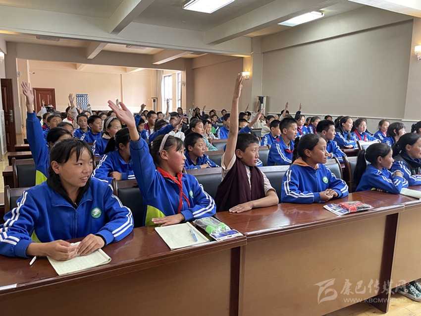 本網(wǎng)訊 在第35個(gè)“6·26”國(guó)際禁毒日,白玉縣人民法院正義雪蓮女子審判團(tuán)隊(duì)到縣第三完全小學(xué)開(kāi)展禁毒宣傳進(jìn)校園專題活動(dòng),活動(dòng)緊扣毒品的種類、吸毒的危害、如何遠(yuǎn)離毒品等內(nèi)容,與同學(xué)們進(jìn)行問(wèn)答式互動(dòng)交流,并為學(xué)生們送去禁毒知識(shí)大禮包。圖為學(xué)生們踴躍參與交流互動(dòng)。 白宣 攝影報(bào)道