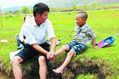 近日,筆者在仁果下鄉(xiāng)采訪時,看到一個年輕人正在給孩子洗腳。“這個孩子是你的親戚嗎?”“不是哦,他們都是我的學(xué)生,因?yàn)楹⒆犹×?,就幫他們洗腳,希望孩子從小養(yǎng)成講衛(wèi)生的好習(xí)慣。”看著筆者不解的目光,他解釋說。