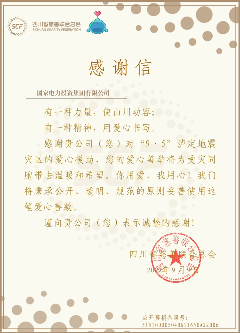 2022年9月5日12時(shí)52分,瀘定6.8級(jí)地震發(fā)生后,國家電投集團(tuán)立刻向?yàn)?zāi)區(qū)捐款1000萬元,全力支援災(zāi)區(qū)救助和災(zāi)后重建,幫助災(zāi)區(qū)人民共渡難關(guān)。面對(duì)災(zāi)情,國家電投甘孜興川公司迅速啟動(dòng)地震應(yīng)急響應(yīng),做好人員、設(shè)備詳細(xì)排查,防范塌方、泥石流等次生災(zāi)害,保持安全生產(chǎn)穩(wěn)定,千方百計(jì)保安全、保供電,充分發(fā)揮央企能源供應(yīng)“穩(wěn)定器”和“壓艙石”作用,助力災(zāi)區(qū)盡快恢復(fù)生產(chǎn)生活秩序。統(tǒng)籌調(diào)度各方力量,克服疫情和余震影響,緊急采購災(zāi)區(qū)急需的發(fā)電機(jī)、電筒等設(shè)備第一時(shí)間送達(dá)災(zāi)區(qū),支援應(yīng)急。在得知瀘定縣得妥鎮(zhèn)電力系統(tǒng)受災(zāi)嚴(yán)重急需救援力量后,公司迅速成立抗震救災(zāi)保供黨員先鋒隊(duì),從正在緊張施工的興川實(shí)證光伏電站抽調(diào)精銳力量26人奔襲700公里,抵達(dá)瀘定縣得妥鎮(zhèn),緊急馳援地方搶險(xiǎn)救災(zāi)工作,拆除100多戶危房電源,恢復(fù)2個(gè)行政村460戶村民安全用電,贏得當(dāng)?shù)卣蜕鐣?huì)各界一致好評(píng)。