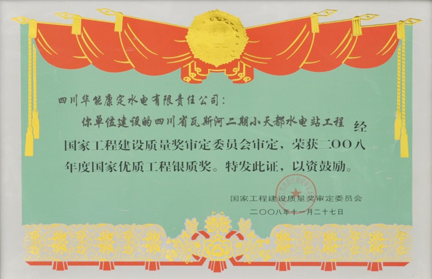 冷竹關(guān)水電站和小天都電站均獲得四川省建設工程最高質(zhì)量獎“天府杯”金獎,接受了朱镕基總理、第十一世班禪等黨和國家領(lǐng)導人多次視察。2006年11月,“康瀘電網(wǎng)”與小天都電站35千伏系統(tǒng)并網(wǎng)成功,結(jié)束了全省最后一個地市州未并入主網(wǎng)而“孤網(wǎng)運行”的歷史。小天都電站還是四川省首個獲得“國家優(yōu)質(zhì)工程獎”的水電站。
