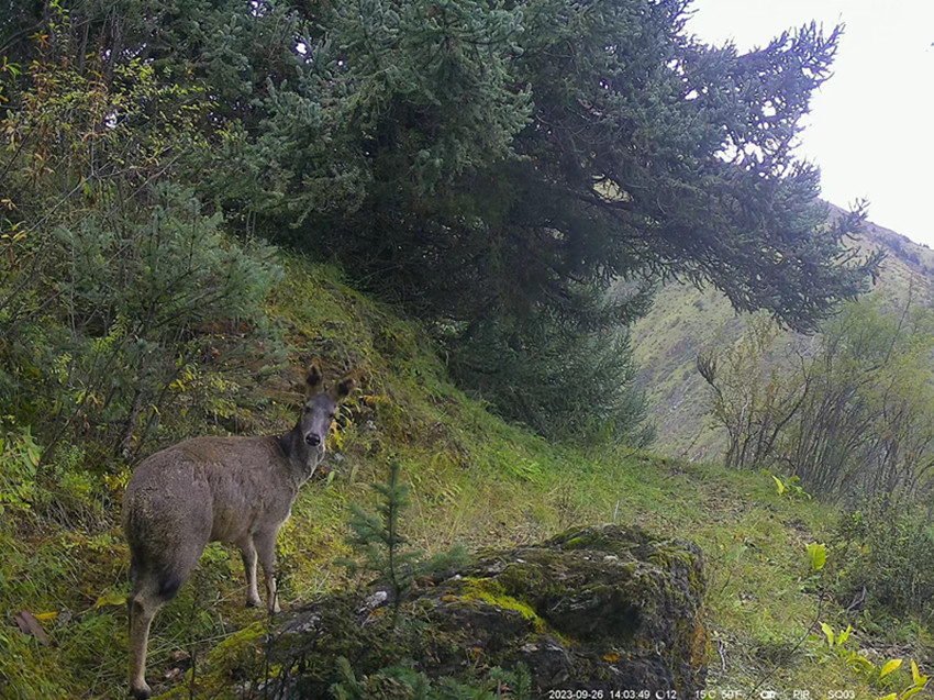 紅外相機(jī)影像資料顯示,一只金錢(qián)豹正走到石頭上眺望,一只棕熊媽媽正帶著幼崽經(jīng)過(guò),一群白唇鹿在紅外相機(jī)前悠閑好奇的觀(guān)望……從肉食性、雜食性到植食性,野生動(dòng)物們?cè)阽R頭里的不時(shí)亮相,一定程度證明保護(hù)區(qū)內(nèi)生態(tài)系統(tǒng)功能健康,食物鏈結(jié)構(gòu)完整。