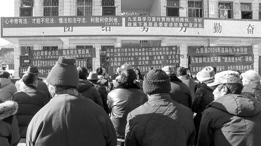 本網(wǎng)訊 1月12日至14日,九龍縣委宣傳部組織縣司法局、縣農(nóng)牧農(nóng)村和科技局、縣衛(wèi)生健康局等部門,聯(lián)合開展了學(xué)習(xí)宣傳貫徹習(xí)近平新時代中國特色社會主義思想、省委十二屆四次全會精神、州委十二屆六次全會精神宣講暨“七下鄉(xiāng)”暖冬行動。