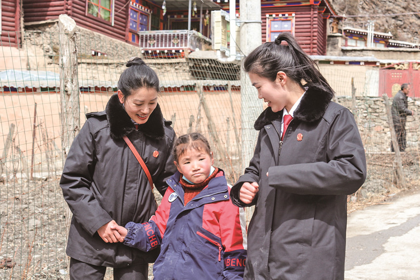 “正義雪蓮”女子審判團(tuán)隊(duì)成員走訪關(guān)心孩子。