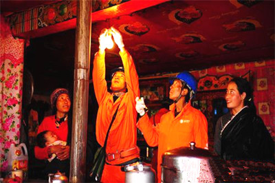 ②走進牧民家中,檢查低壓線路。