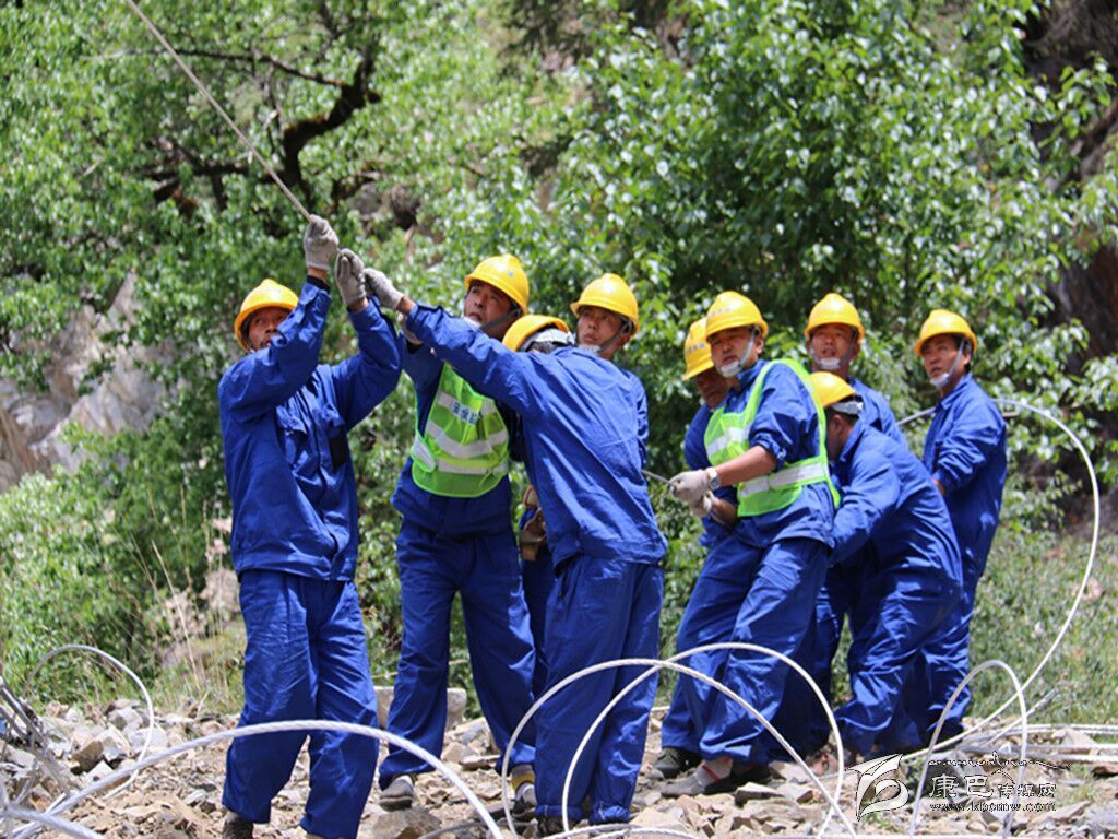 為了圓農(nóng)牧民通電夢(mèng),甘電公司誓要打好“決戰(zhàn)年”戰(zhàn)役。山高、路難、溝深、水急是今年無(wú)電區(qū)電力建設(shè)現(xiàn)場(chǎng)的真實(shí)寫(xiě)照。在甘孜高原上奮斗著來(lái)自參建的監(jiān)理、建設(shè)和施工單位共計(jì)15支隊(duì)伍,他們和高原惡劣的氣候抗衡著,他們用“奮斗”二字譜寫(xiě)著一首“電力人之歌”,為無(wú)電地區(qū)的藏族百姓早日通電打好了“決戰(zhàn)年”的戰(zhàn)役。在甘孜州各縣條件艱苦的無(wú)電地區(qū)工程建設(shè)點(diǎn),隨處可見(jiàn)身著國(guó)網(wǎng)標(biāo)志的身影。在色達(dá)、甘孜、石渠、理塘、巴塘、雅江等邊遠(yuǎn)的“無(wú)電地區(qū)”施工現(xiàn)場(chǎng),電力建設(shè)者們,頂寒風(fēng),斗冰雪,與惡劣環(huán)境抗衡,立塔架線,每天早出晚歸,完成一項(xiàng)又一項(xiàng)“難啃”的工程,夜晚燒堆篝火取暖,次日再次奔赴施工現(xiàn)場(chǎng)。這樣的“辛苦”記者在采訪過(guò)程中也見(jiàn)到。在雅江縣德差鄉(xiāng),手握對(duì)講機(jī),身穿工裝的工程項(xiàng)目負(fù)責(zé)人龍森和他所以在的工程隊(duì)的工人們每天都是頂著烈日、冒著風(fēng)雨加班加點(diǎn)在趕工程進(jìn)度,幾個(gè)月下來(lái),有的工人身上被太陽(yáng)曬掉了幾層皮??墒撬麄儚膩?lái)沒(méi)有喊一聲苦,喊一聲累,晴天一身汗,雨天一身泥,每到一個(gè)點(diǎn)都出色完成了任務(wù)。在困難和辛苦面前,龍森和工人師傅堅(jiān)定的說(shuō):“再苦再累我們也受得了,只要老百姓能盡快用上電做什么都值得。這段路線的電桿已經(jīng)全部立起來(lái)了,現(xiàn)在只剩下架線的工作。我們一定要在月底之前為這兩個(gè)村通上電。”