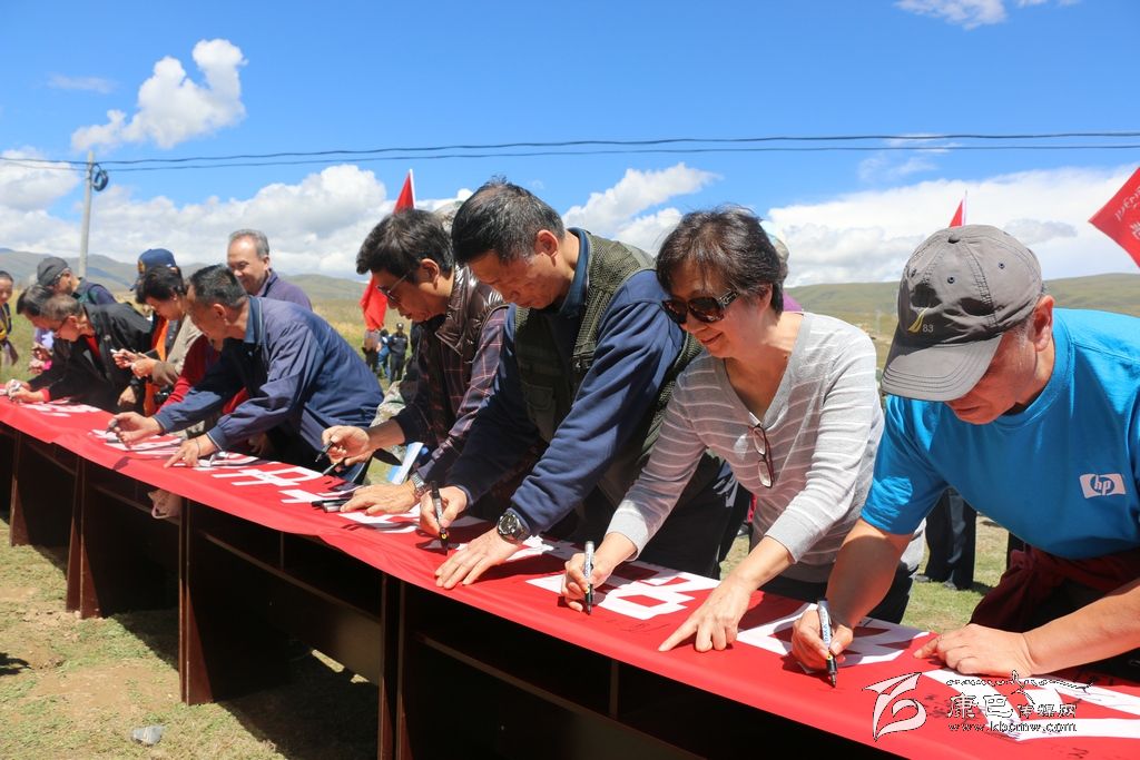 當(dāng)天中午,“甘孜州紀(jì)念紅軍長(zhǎng)征在甘孜80周年暨紅色文化旅游宣傳促銷(xiāo)系列活動(dòng)之紅軍后代重走長(zhǎng)征路活動(dòng)”在該縣十八軍窯洞群遺址隆重舉行,康北民族高級(jí)中學(xué)、斯俄鄉(xiāng)干部、武警官兵、寺廟僧人600人參加了此次活動(dòng)。活動(dòng)中,紅軍后代們認(rèn)真聆聽(tīng)了講解員介紹十八軍窯洞群鮮為人知、催人奮進(jìn)的歷史故事。他們敬獻(xiàn)花圈、整理挽聯(lián),向在高原上艱苦奮斗、舍身赴義的革命先輩們默哀。隨后,參與活動(dòng)人員在“藏漢一家親”和“紀(jì)念紅軍長(zhǎng)征在甘孜80周年”的巨型橫幅上簽名,并與紅軍后代徒步一公里,其間由學(xué)生、群眾代表、志愿者和紅軍后代互動(dòng)拉歌 。大家用自己的歌聲、自己的行動(dòng),回顧那段歷史,緬懷革命先輩的豐功偉績(jī),感受紅軍先烈們艱苦的生活環(huán)境和艱險(xiǎn)的戰(zhàn)斗歷程。