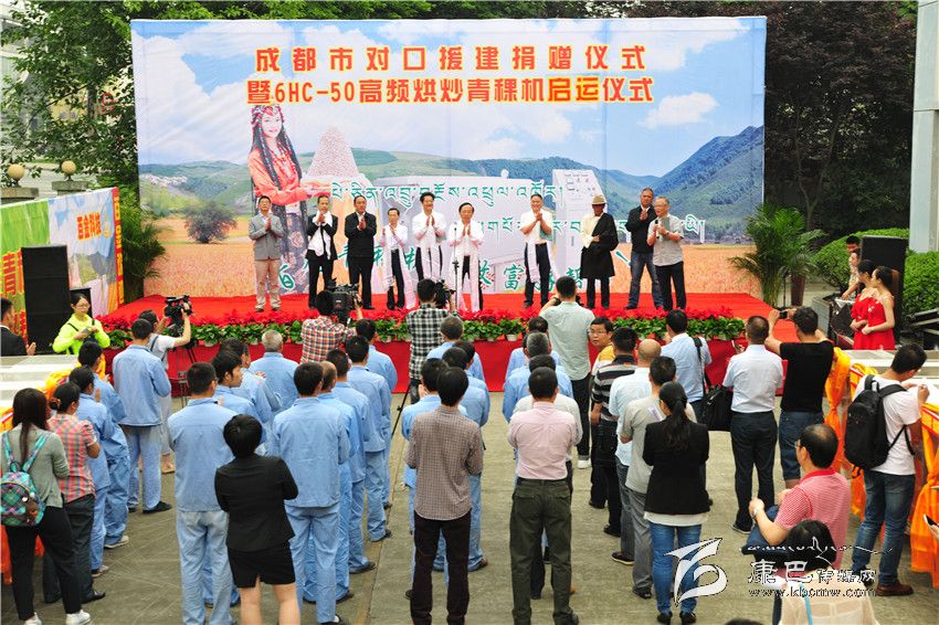 成都市委常委謝瑞武宣布50套全自動高頻青稞烘炒機(jī)啟運甘孜州。