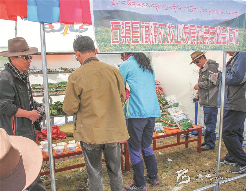 8月3日是石渠縣帳篷節(jié)的最后一天,清晨的陽光透過炊煙傾灑在草原千余頂帳篷上,40多歲的藏族漢子嘎戎從生活區(qū)的帳篷里出來,走向不遠的太陽部落帳篷商貿城集市。那里安扎著400多頂帳篷,有商戶370家,周邊還有50多個流動的小商販。嘎戎所在的石渠縣福源農牧業(yè)發(fā)展農民合作社就是其中的一家參展商。從帳篷節(jié)開始,嘎戎就和其它5個人輪流值守這個他們倍加珍惜的展位,那是他們合作社自今年4月份成立至今第一次在如此重大的場合中露面,經過這次檢驗,他們對自己的產品更加有信心。駐真達村第一書記祝修濤告訴記者,短短一個星期,合作社展售的糌粑、人參果、奶渣近2000斤,銷售額達4萬多元。這個農民專業(yè)合作社以扶貧為己任,從建設種植基地到水磨房加工投入了200多萬元,全村50戶村民參與,合作社將原料統(tǒng)一發(fā)給村民加工,再統(tǒng)一收起來,統(tǒng)一包裝銷售。祝修濤說,社里的產品剛開始只是在當地出售,雖然投入大但產量不敢做大,這次有這個平臺得到了市場的認可,他們對合作社的發(fā)展充滿了信心。祝修濤,作為該村的第一書記,他要帶領著這個合作社好好規(guī)劃、大干一場。