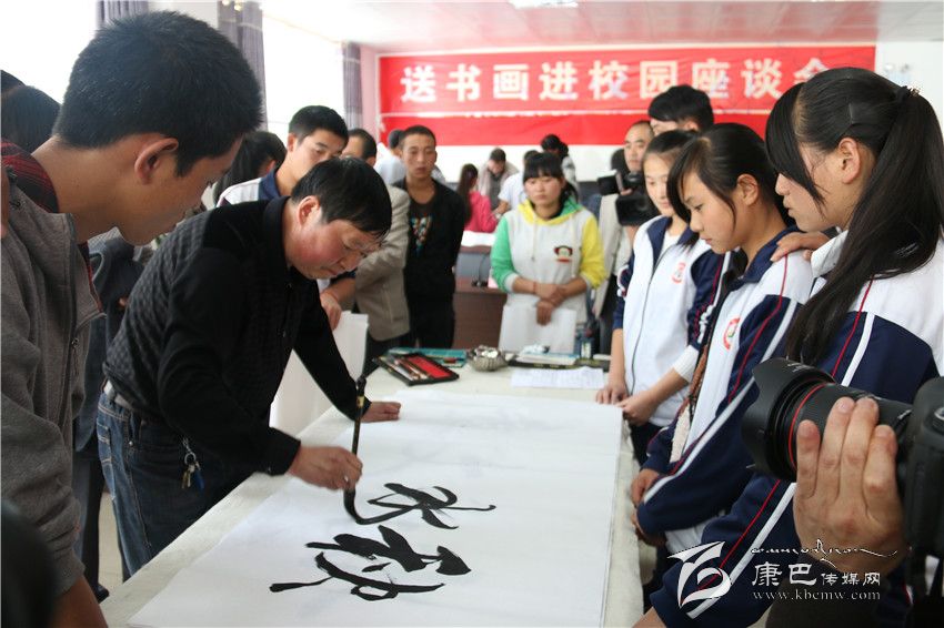 州關工委領導送書畫進校園。