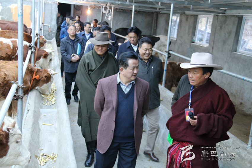 與會人員在雅江縣八角樓鄉(xiāng)王呷一村奶牛場考察。