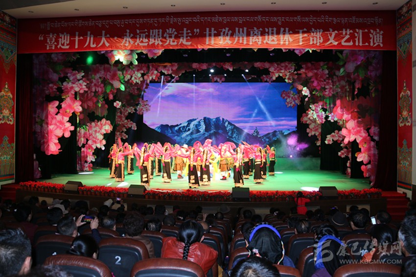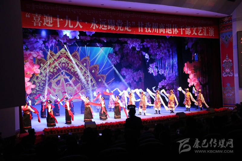 本網(wǎng)訊(記者 宋志勇 文/圖)9月29日,由州委、州政府主辦,州委組織部、州委老干部局、州文體廣新局承辦的“喜迎十九大、永遠(yuǎn)跟黨走”全州離退休干部文藝匯演在康定劇場(chǎng)舉行,旨在謳歌黨在藏區(qū)的豐功偉績(jī),頌揚(yáng)甘孜兒女今天的幸福生活。州級(jí)退休老領(lǐng)導(dǎo)胡克禮、吞珠、寧紹武、便巴傾批、李明璽、何濤、李其福、郭昌平以及州委老干部工作領(lǐng)導(dǎo)小組成員單位領(lǐng)導(dǎo)和相關(guān)部門領(lǐng)導(dǎo)出席并參加活動(dòng)。州委常委、宣傳部長(zhǎng)相洛出席活動(dòng)并致辭,省委老干部局副局長(zhǎng)史可,州人大常委會(huì)副主任白蘇英、州政府副州長(zhǎng)鄭天強(qiáng)、州政協(xié)副主席陳洪暴和特邀嘉賓涼山州委組織部副部長(zhǎng)、老干局局長(zhǎng)楊國(guó)敏出席并觀看演出。