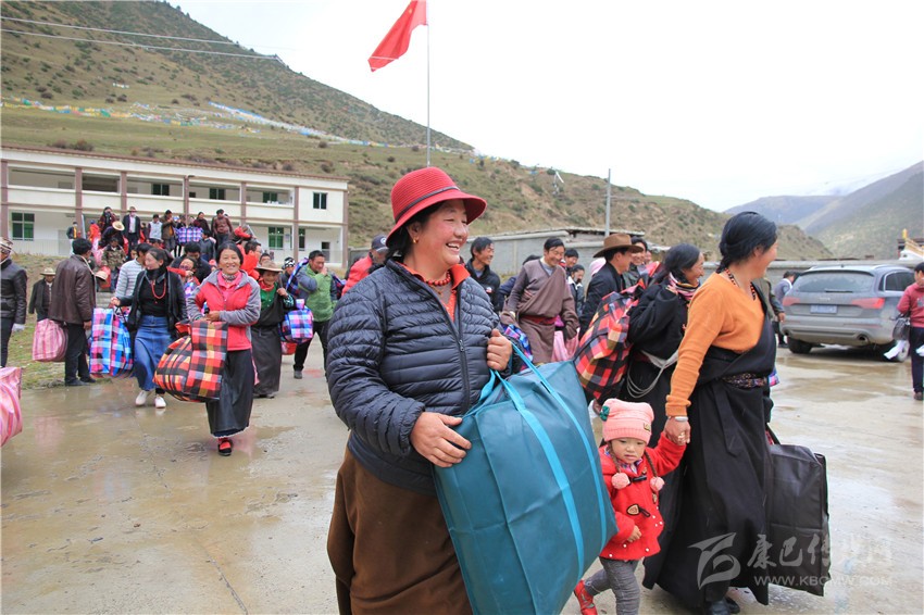德格縣群眾領到愛心物資。