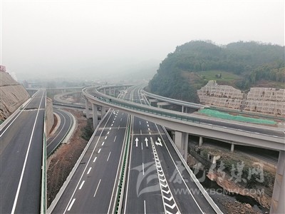 道路兩旁山嶺逶迤,觸目所見(jiàn)的高速公路,幾乎全都搭建在山腰帶際之間,如同蒼山綠水上的一條“彩練”。山河與路橋隧的錯(cuò)落有致,車上的人便更有一種與藍(lán)天白云的距離越來(lái)越近的錯(cuò)覺(jué)。沿線綠化因地制宜,打造水體山體景觀,“車在路上行,路在景中生,人在畫(huà)中游”的美感油然而生。