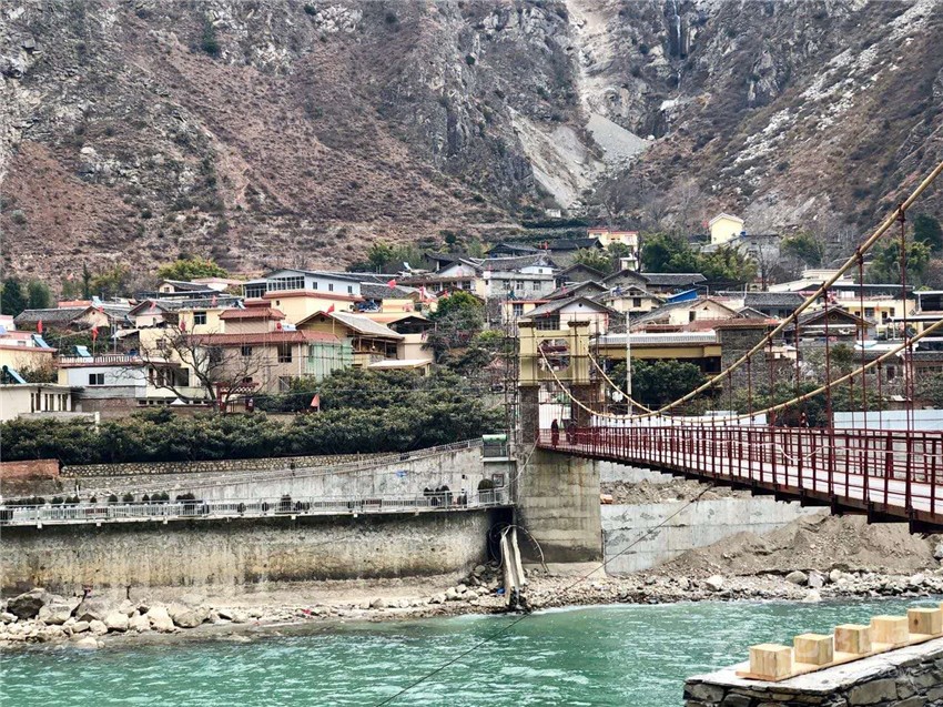 來(lái)到時(shí)濟(jì)鄉(xiāng),鐵索橋?qū)Π毒褪侨艏?,流淌的大渡河水從橋下穿過,若吉村內(nèi)正在進(jìn)行民居風(fēng)貌升級(jí)改造,一些改造的民居外形已初顯。