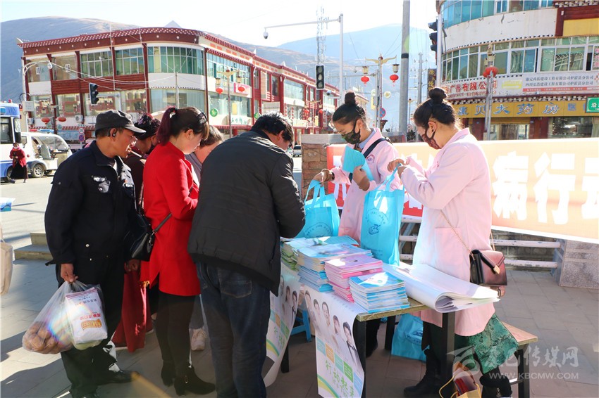 活動現(xiàn)場,工作人員以懸掛橫幅、大屏幕播放宣傳片、發(fā)放宣傳資料等方式,并通過藏漢雙語向群眾講解了結核病的危害、常見癥狀、傳播途徑、預防措施、治療周期以及國家對結核病患者的免費政策等,讓大家了解和掌握了結核病防治知識。