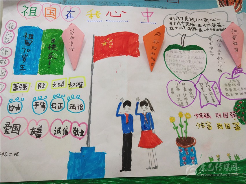 活動在該校三至六年級學生中開展,老師為學生提供創(chuàng)作所需材料,讓學生自由想象發(fā)揮,把自己心中對祖國的熱愛躍然紙上。各班精心組織,不到兩個小時的時間,一幅幅主題鮮明、內(nèi)容豐富、色彩明快的手抄報誕生了,孩子們的作品充滿了對祖國深深的愛與衷心的祝福。何俊鑫 文/圖