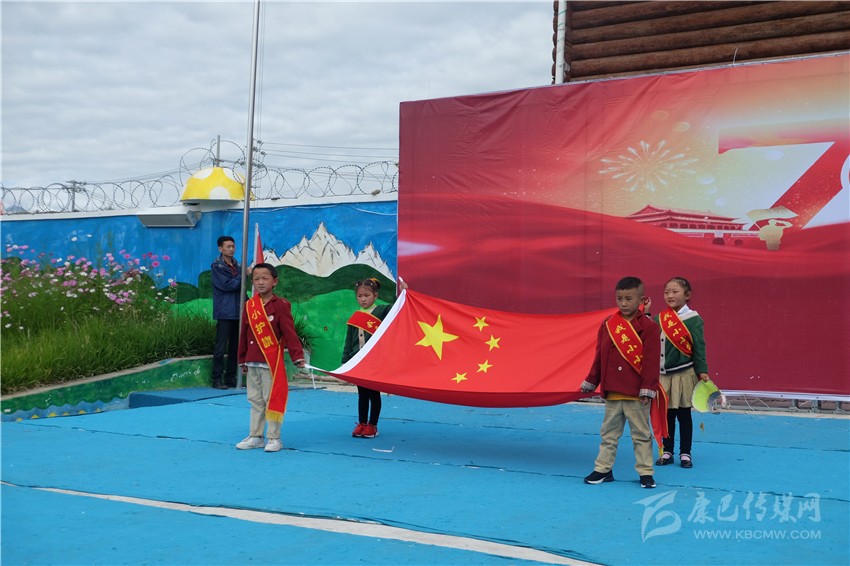 甘孜鎮(zhèn)雙語幼兒園舉行升旗儀式。