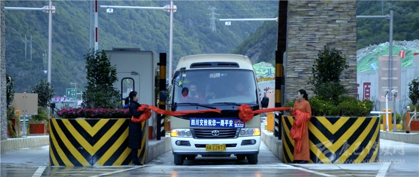 “木雅古碉”建筑矗立兩旁、六出四進(jìn)通道一字排開;巨大熒幕流光溢彩,連接通道窗明幾凈;從無人機航拍畫面可以看到,一面巨大的五星紅旗,已在站頂平層鋪展開來……9月28日上午8時整,一輛客車從升航特大橋駛來,撞破紅綢駛向康定城,旁邊車道上等待多時的車輛依次行進(jìn),雅康高速公路上規(guī)模最大的收費站——康定收費站正式啟用,康定連接線和入城大道通車?!翱刀ㄟB接線建成后將極大提高雅康高速公路進(jìn)入康定城區(qū)車輛通行效率、有效改善康定入城交通的擁堵狀況?!辈貐^(qū)高速公路公司相關(guān)負(fù)責(zé)人如是說。