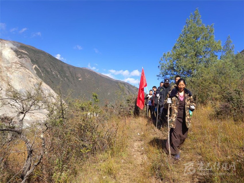 絨蓋鄉(xiāng)黨委書(shū)記根忠翁姆率隊(duì)前往堰塞壩體。