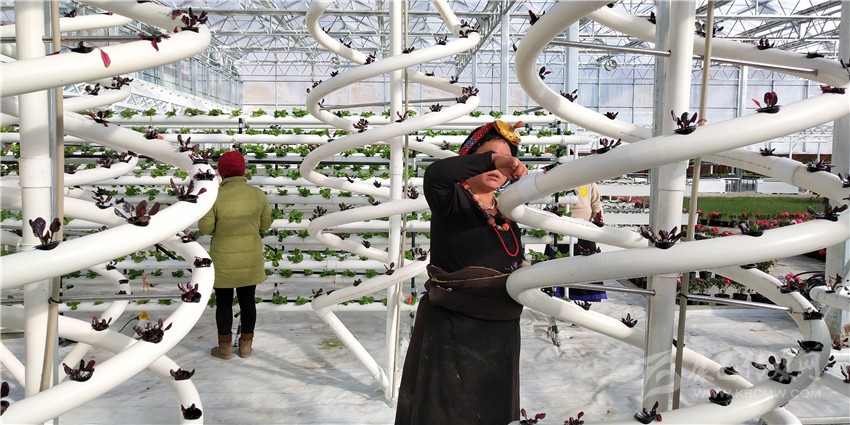 2019年4月16日,在色達(dá)縣旭日鄉(xiāng)江達(dá)村蔬菜大棚內(nèi),江達(dá)村村民葉美動(dòng)作麻利地采摘黃瓜,熟練的采摘技術(shù)讓她一天能掙100余元?!艾F(xiàn)在,村里建起了蔬菜大棚,自家的土地流轉(zhuǎn)后金實(shí)公司每畝地給她700元,14畝將近1萬元;自己還在蔬菜基地打工,一年收入2.5萬元;家人還在色達(dá)縣城做蔬菜生意,一年收入6萬元,我們的日子越過越有奔頭?!弊猿晒γ撠毢?,葉美的臉上始終洋溢著幸福的微笑。