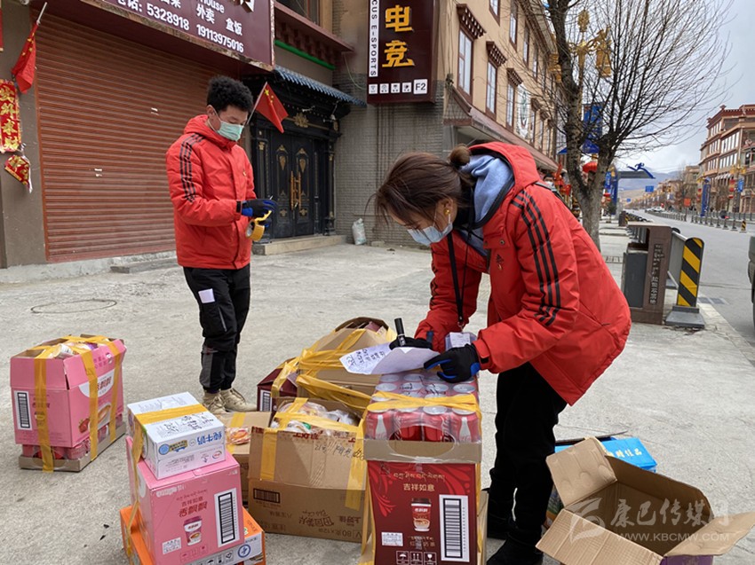 德格縣志愿者為商戶(hù)發(fā)放消毒用品。