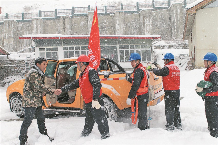 黨員服務(wù)隊(duì)在康定2·21雪災(zāi)期間冒雪前往搶修。