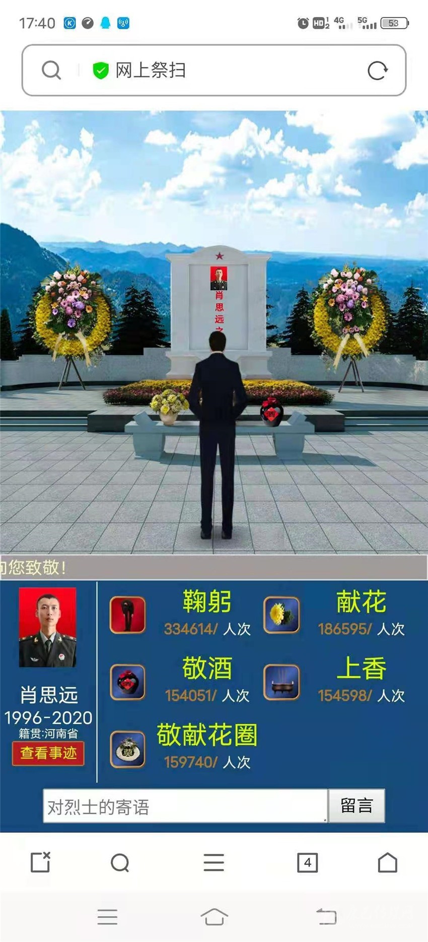 同時(shí),該行轄內(nèi)廣泛組織開(kāi)展告慰先烈?守護(hù)有我”線(xiàn)上文明祭掃活動(dòng),積極動(dòng)員各縣(市)支行黨員干部登錄中華英烈網(wǎng)。