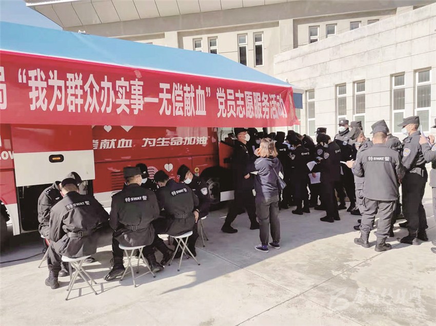 特警戰(zhàn)士參與無(wú)償獻(xiàn)血。